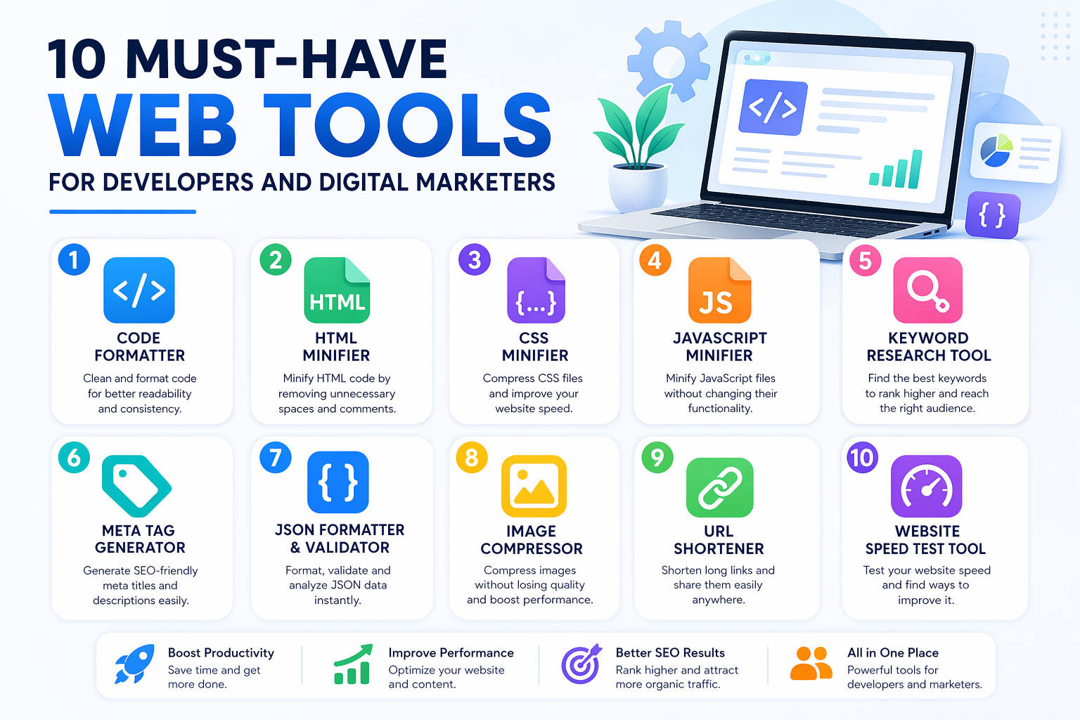 Web tools help developers and digital marketers save time, improve productivity, and complete daily tasks directly from the browser. Whether you are building websites, op...